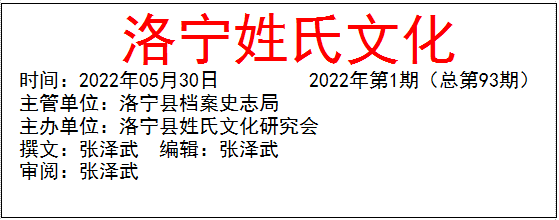 作者简介:张泽武,洛宁县陈吴乡新寨村人,2003年发起并组织成立了洛宁县姓氏文化研究会,任常务副会长兼秘书长。2006年参与组织筹备成立洛阳姓氏文化研究会,任副秘书长。2017年被推举为洛宁县姓氏文化研究会会长。
