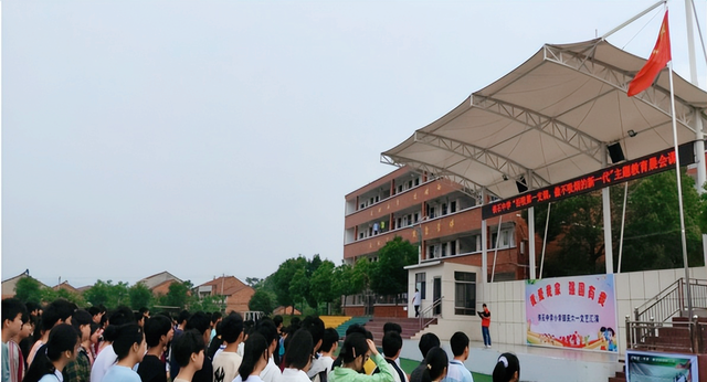 然后,七年级四班学生毛守卿代表全体同学发出倡议,表明拒绝吸烟的决心,并带领大家宣誓:拒吸第一支烟,做新时代好少年。