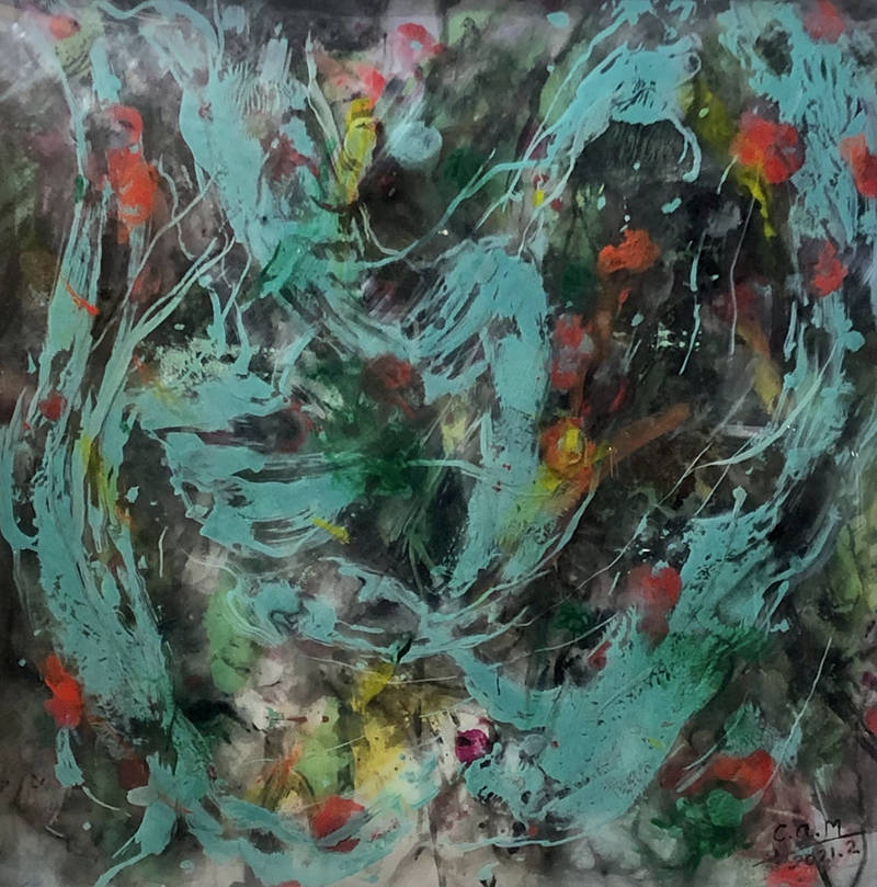 透叠画,源于仓爱民的自创,属于综合材料绘画艺术范畴,创作时在多层有机玻璃板上正反绘制,并用多种绘画材料及手法完成点、线、面的艺术碰撞与融合,最后将画好的有机玻璃板进行组合叠加在一起,形成了深邃通透又立体多维的绘画艺术效果。