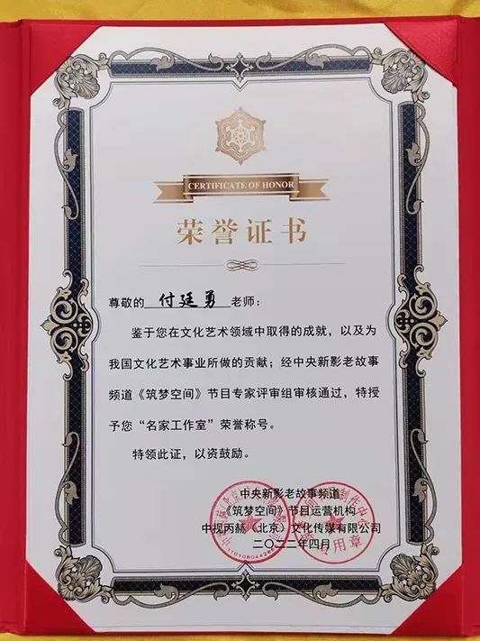 2022年3月中央新影老故事频道筑梦空间栏目组授牌建立付廷勇名家工作室。