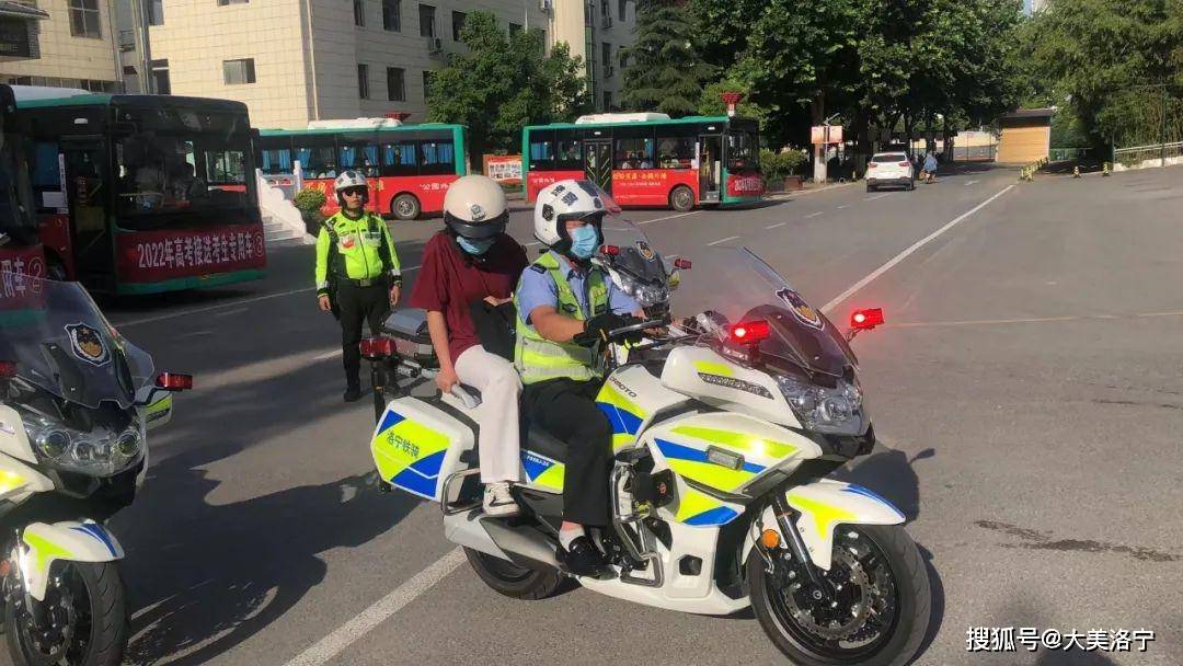 6月8日上午7时50分,洛宁县第一高级中学学生向正在执勤的洛宁交警铁骑队执勤人员求助,希望能够乘坐警用摩托护到洛宁县高级中学考点。