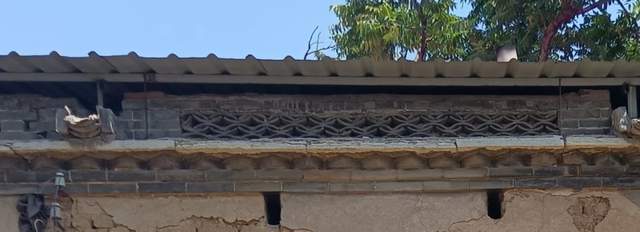 目前現存的沒有翻建的北屋, 前後門還保留了原樣, 青磚裝飾的門垛和窗口, 牆上端的青磚飾邊, 屋頂灰瓦的裝飾, 讓二弟見到祖屋時格外的興奮, 沒想到在院裡鬧市的山下小村居然有如此講究的 “百年民居”. 即使在濟南老城區, 普通民居的平房, 用青磚灰瓦多層裝飾成為建築線條的也不多見, 老舍居住過的南新街平房院落也沒有這般的講究, 除非是大戶人家的深宅大院, 前走廊後廈檐. 經請教專家, 他們說這種門垛頂端的器物, 稱為 “庇檐”, 而有這種庇檐的門垛, 很少見到, 更別說在遠離繁華古城的偏遠山區, 若有, 也一定是非富即貴, 非常有文化底蘊的大戶人家的建築老宅子.