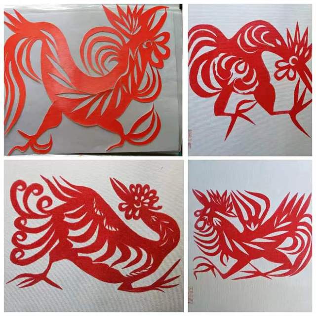 母親的晚年剪纸藝術中, 有一種生肖大雞占了很大的一部分, 源於她最鍾愛的小孫孫生肖為雞, 所以母親就剪了很多站立的, 奔跑的, 傲視的公雞, 孵蛋的母雞, 活潑的小雞, 還有抽象的各種雞的型態. 雖然造型各异, 但都是威武神勇, 活潑可愛. 研究生肖畫的藝術家郭立黃老師, 看到母親剪的作品, 很有感慨, 表示:“ 剪纸本身, 一般都是在春節前後貼的窗花, 北方的冬季萬物凋零,一片灰色, 但李老先生的剪纸, 給人眼前一亮, 給人們總是帶來希望和光明. 您母親的剪紙是一種精神的昇華” , “這種剪紙給人們帶來的是果敢, 肯定, 還有對生活的愛和希望”, “這種剪紙的藝術張力不輸給馬蒂斯”.