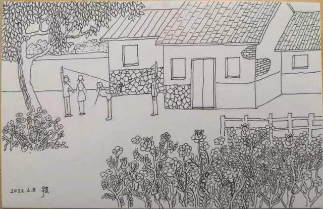 (圖5 平陰的的民居被玫瑰花所包圍, 蓮君繪圖)