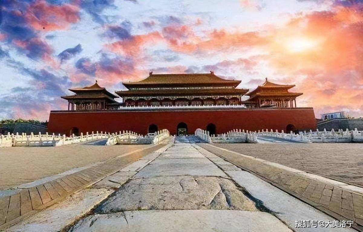 故宫的正门叫“午门”,俗称五凤楼。东西北三面以12米高的城台相连,环抱着一个方形广场。有1组建筑。正中有重楼,是9间面宽的大殿,重檐庑殿顶,在左右伸出的两阙城墙上,建有联檐通脊的楼阁四座,明廊相连,两翼各有13间的殿屋向南伸出,四隅各有高大的角亭,辅翼着正殿。这种形状的门楼称为“阙门”,是中国古代大门中最高级的形式。这一组城上的建筑,形势巍峨壮丽,是故宫宫殿群中第一高峰。午门是皇帝下诏书、下令出征的地方。每遇宣读皇帝圣旨,颁发年历书,文武百官都要齐集午门前广场听旨。午门当中的正门平时只有皇帝才可以出入,皇帝大婚时皇后进一次,殿试考中状元、榜眼、探花的三人可以从此门走出一次。文武大臣进出东侧门,宗室王公出入西侧门。