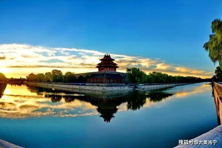 一条中轴贯通着整个故宫,这条中轴又在北京城的中轴线上。三大殿、后三宫、御花园都位于这条中轴线上。在中轴宫殿两旁,还对称分布着许多殿宇,也都宏伟华丽。这些宫殿可分为外朝和内廷两大部分。外朝以太和、中和、保和三大殿为中心,文华、武英殿为两翼。内廷以乾清宫、交泰殿、坤宁宫为中心,东西六宫为两翼,布局严谨有序。故宫的四个角都有精巧玲珑的角楼,建造精巧美观。宫城周围环绕着高10米,长3400米的宫墙,墙外有52米宽的护城河。