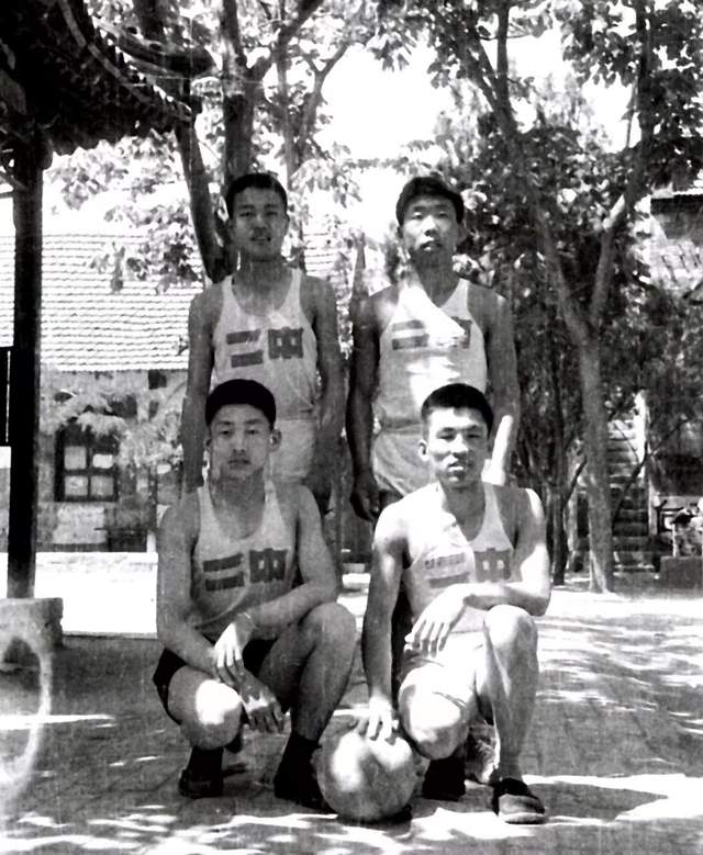 (圖6, 濟南二中老三屆籃球隊1968年老照片, 其中右二排第一位為好友劉南, 他也是二中射擊隊的主力隊員, 照片中二排中為賈老師, 還有王新力, 蘇魁英, 金永昌等, 老學長玉海提供)
