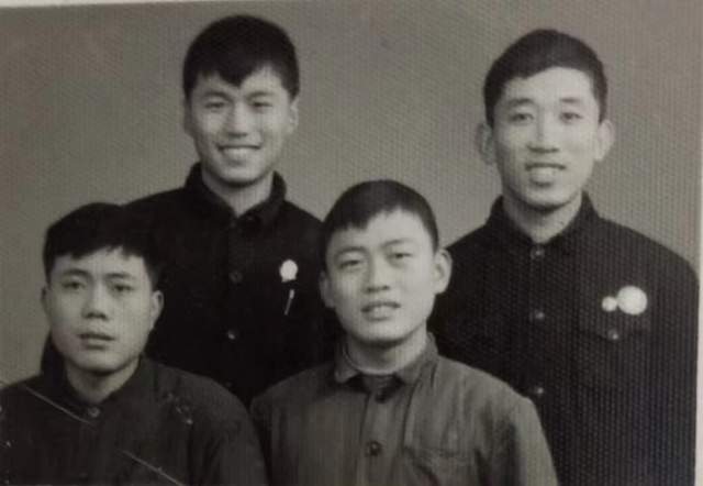 (圖8濟南二中十九級五班學友高傑和同窗合影, 為李新民, 魏新民, 後排高傑和張昌亮, 源於作者濟南二中憶舊文章)