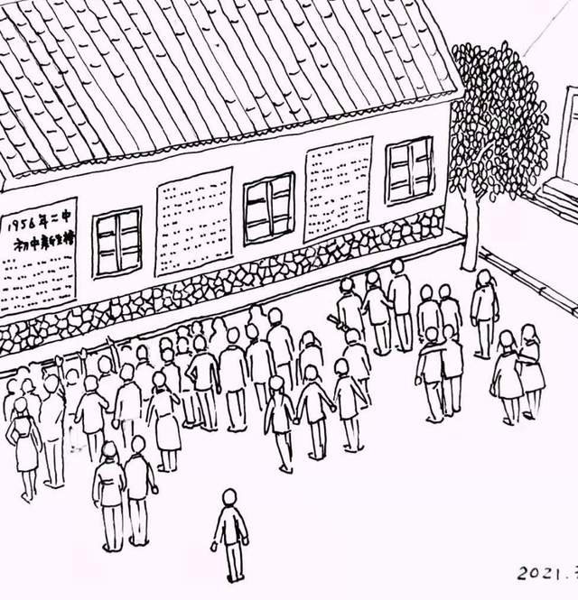 (圖 7濟南二中新生錄取發榜, 蓮君繪圖)