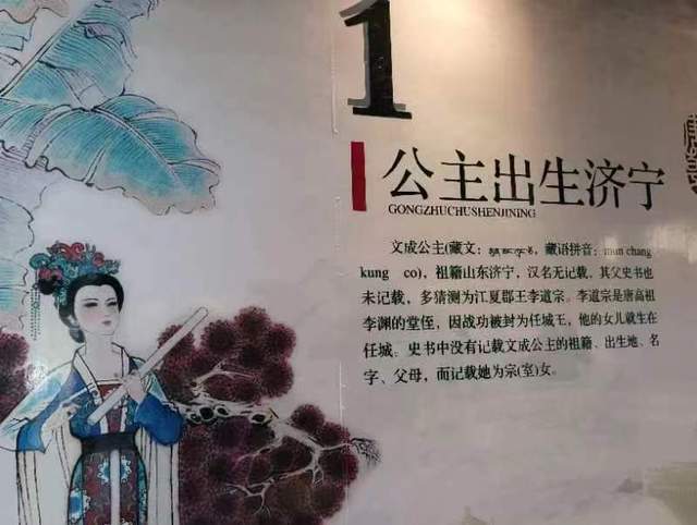 全部的传奇,在一层的宽阔展厅内,均可尽收眼底。传奇由14个部分组成:1为“公主出生济宁”,2为“公主少时亦红女”,3为“聪颖过人博学精进”,4为“兼学岐黄之术”,5为“吐蕃赞普向大唐求婚”,6为“唐太宗接见吐蕃使臣”……直至第14部分“开创唐蕃交好新时代”。