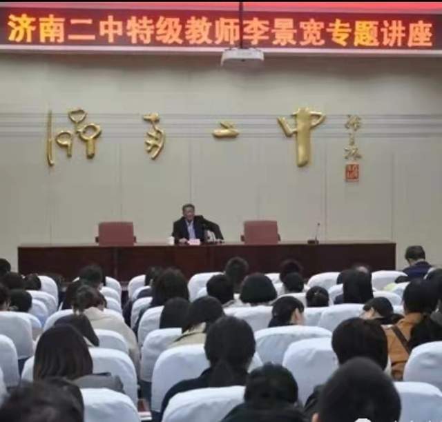 (图 2, 特级教师李景宽先生在二中讲座, 秦玉海学长提供)
