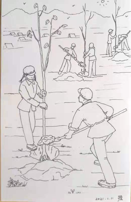 每年我们都要去济南郊区帮助当地农民收麦子, 挖地, 或者改造鲁北的盐碱土壤, 挖地三尺, 来回翻腾.