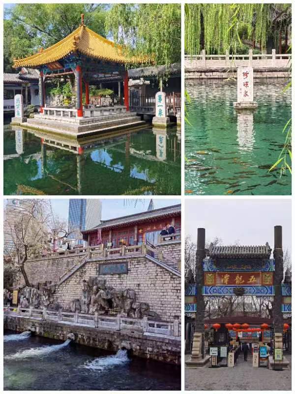 (图3 济南趵突泉, 黑虎泉, 五龙潭, 珍珠泉, 甘老师在黑虎泉以东, 李老师在五龙潭以西 )