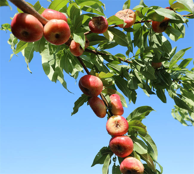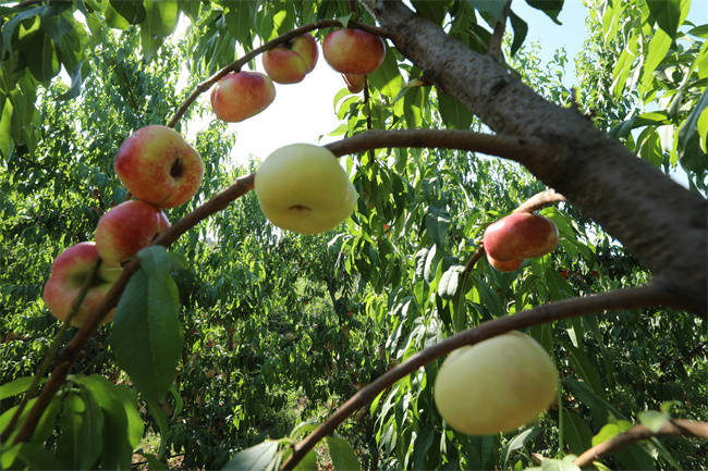 仲夏时季,瓜果飘香。6月18日笔者在金顶山脚下的春兴种植合作社果园区看到,满山遍野的桃子红了,桃树下套种的一行行西瓜排队在“迎客”,大棚里成熟的瓜果随风飘香,园区里前来采摘的大爷、大妈脸上乐开了花。