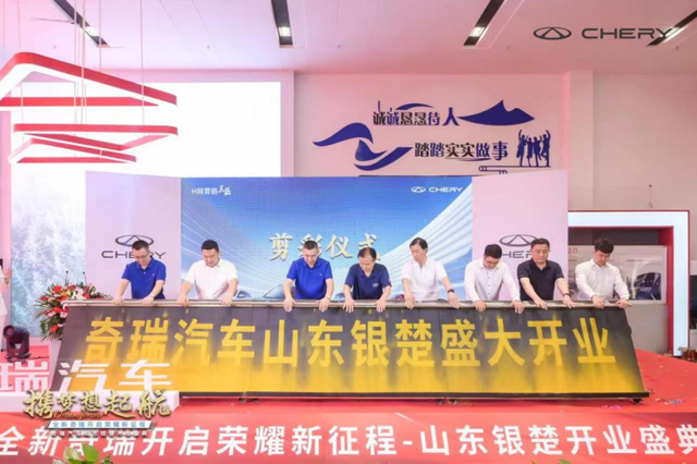 携梦起航,开业现场,众多领导和嘉宾一起为山东银楚开业剪彩,山东银楚,开启荣耀新征程!预祝山东银楚销量长虹,与奇瑞汽车共同乘风破浪,一路向前!