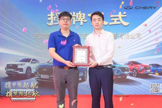 奇瑞汽车营销公司营销三区市场经理毛凯杰先生和山东银楚4S店总经理江元祥先生共同为奇瑞汽车山东银楚4S店做授牌。
