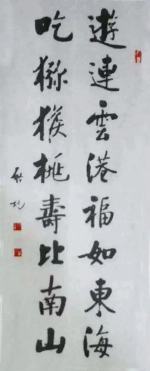 陈凤桐向启老请教一些作品中涉及到的典故源出,启老都耐心地一一分析讲解,使压在他心中的许多疑团云开雾散。启功书法他早就崇拜,而学富五车只是听传说,此时亲见启老不用查阅任何资料,现场面对全国各地几百名书家来稿,从容地说文解字,更使他开阔眼界,钦佩之情油然而生,对“编选”工作的意义又有了新的认识。他从作品照片中挑出启老撰书的那副饶有情趣的“游连云港福如东海,吃猕猴桃寿比南山”联,感谢启老的赐作,并感谢他对连云港的赞美。启功笑着说:“我的字写得不好。但是,您委办的事,我一定得认真,当大事儿完成!”诙谐的话语逗得陈凤桐开心地笑了。