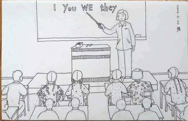 (图3 刘燕南老师的英文课, 莲君绘图)