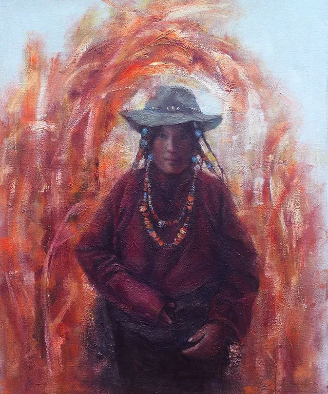 《回眸》油画66X56CM