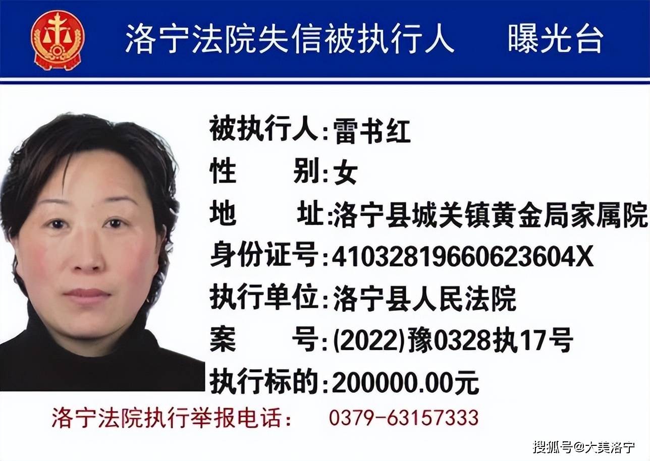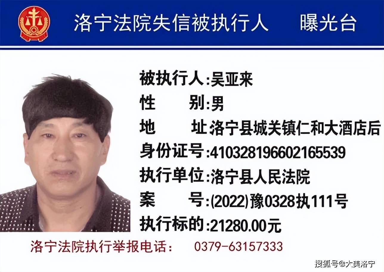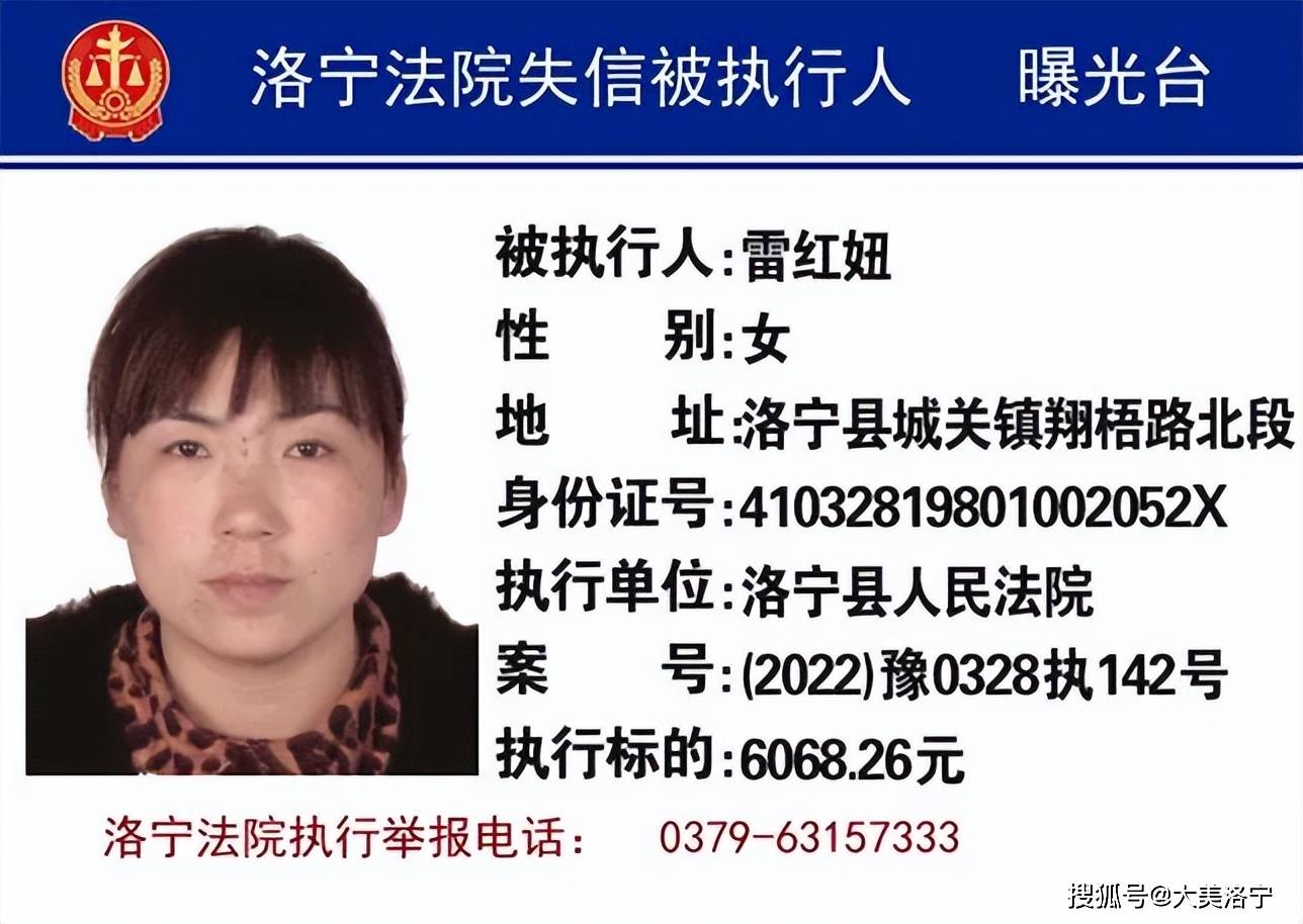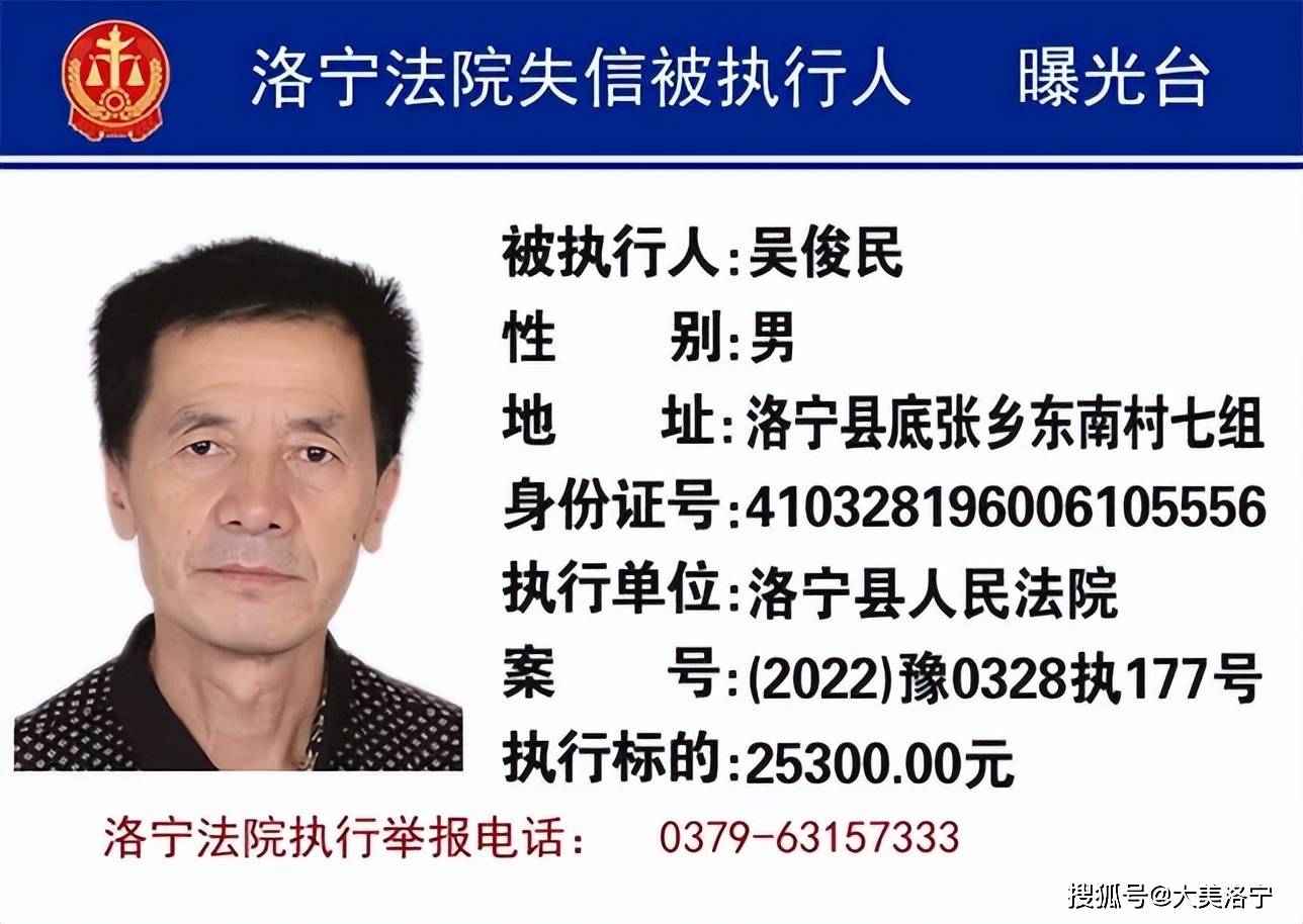 洛宁县6月份“失信被执行人”名单曝光
