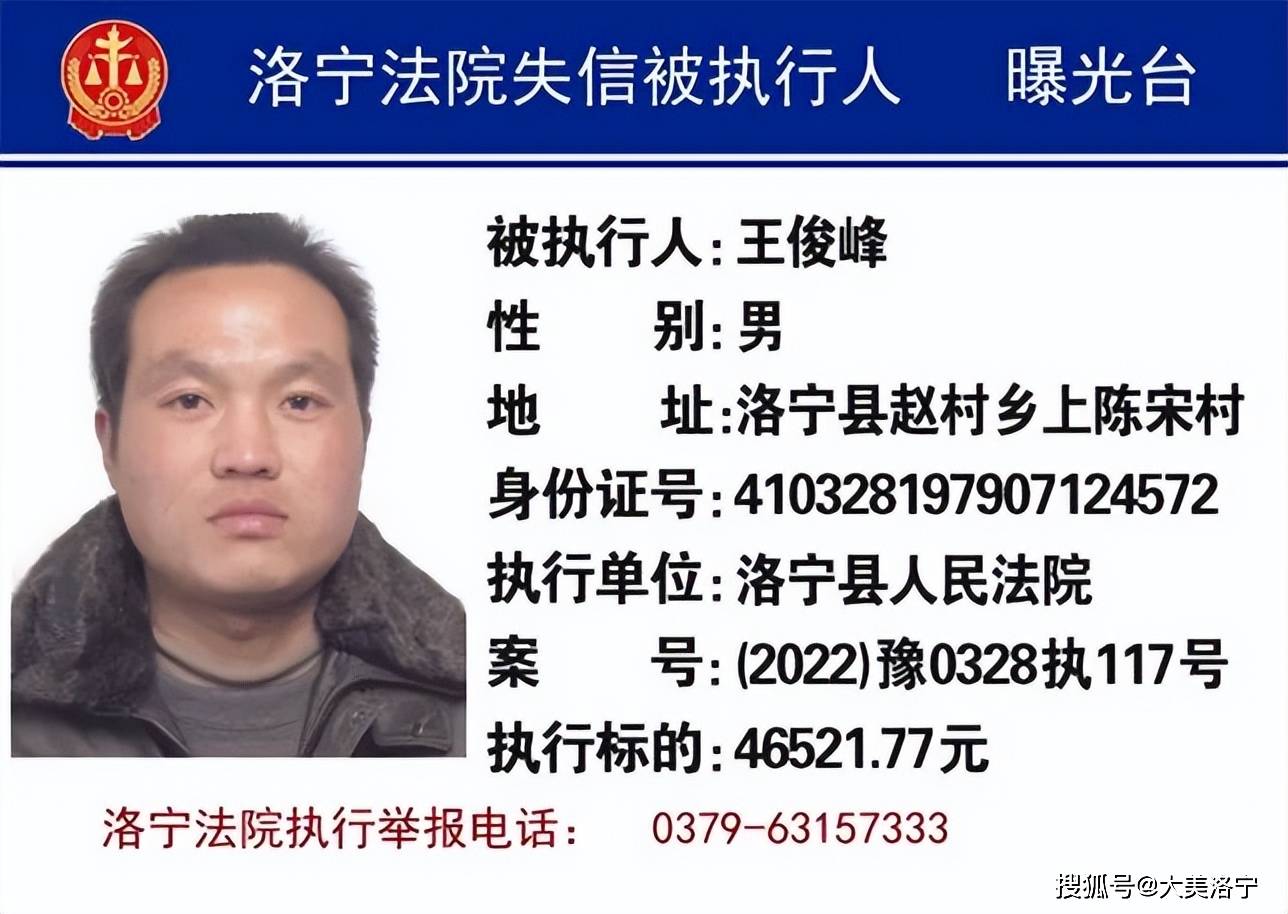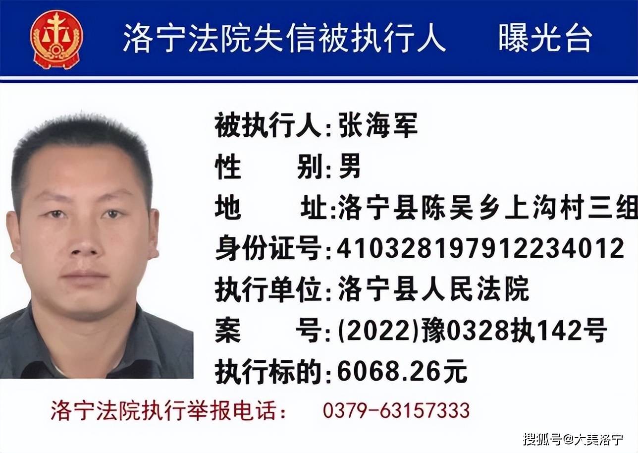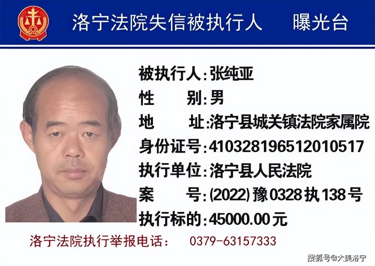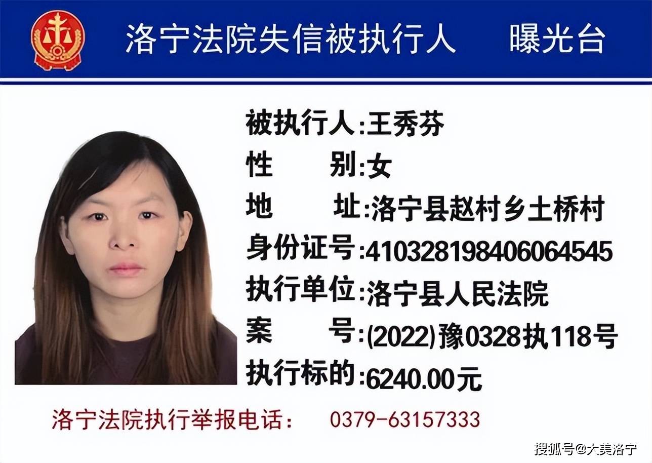 洛宁县6月份“失信被执行人”名单曝光