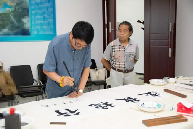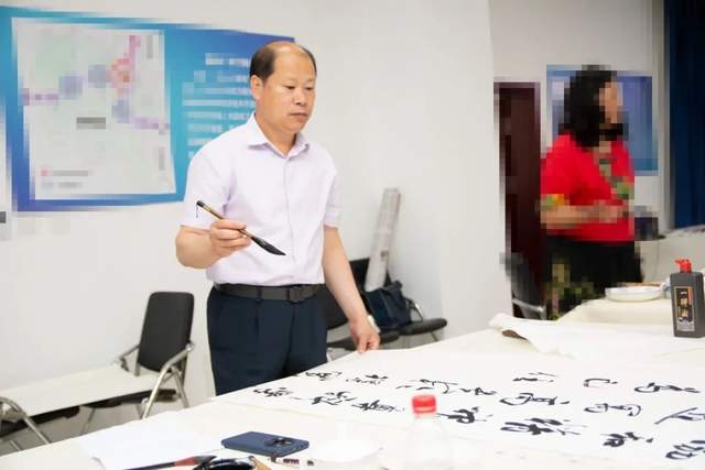 天津运河画院院长孟宪奎在现场书法创作