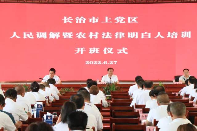 6月27日,长治市上党区人民调解暨农村法律明白人培训班在太行乡村振兴人才培训中心开班,来自全区各乡镇司法所负责人、各村(社区)两委班子成员、专职人民调解员、农村法律明白人、司法所工作人员参加培训。