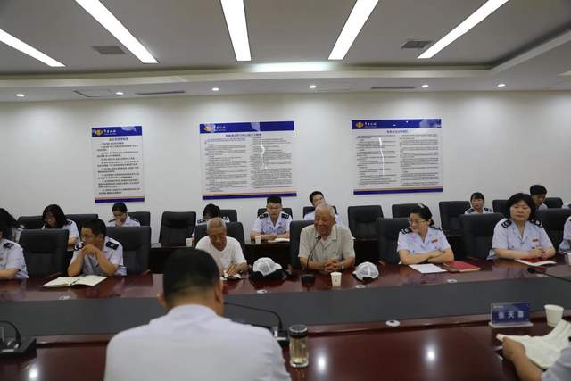 老干部陈玉启同志向大家分享了他1963年参加税务工作直至退休的工作经历,党在心中、往事历历在目,在当时条件下,为了一两毛钱或一两块钱的税款,冒雨步行几十里上门追缴,吃不上饭、深夜回家时常发生。那时心中只有一个信念,为党尽忠、为国聚财,一分一毛不能流失。现在条件多好,出门办税有车,申报税款足不出户,他勉励年青人要好好工作,你们赶上了好时代,这都是共产党领导带来的,你们要报效党、多为党做贡献。