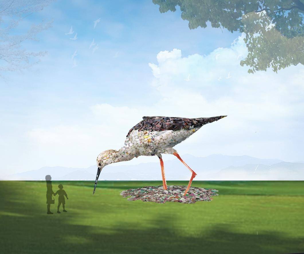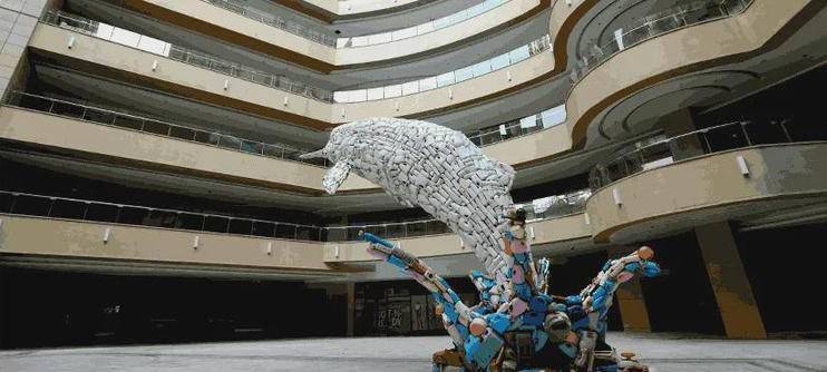艾:关于生态文明的话题,去年我写过一首关于《塑料盆》的口语诗,就是反映大部分人是没有生态环保自觉意识的。“本人素来环保/常将塑料盆置于洗手池里/待蓄满洗手水后再冲厕//与省钱无关/与不浪费有关/与节约用水相关//然而/多年以来/家里只有我一个人/这么坚持“,所以枯燥的宣传教育是会让人无动于衷,一定要有更好的方式。所以我想到徐国峰先生之前的一个命名为《回忆》的户外公共作品——用塑料瓶堆砌成的巨型白鳍豚,这样一个艺术作品就会产生很大的感官刺激,媒体报道宣传也言之有物,它也不枯燥,人们接受起来的就很有直观感。所以是说艺术家、环保人士和传媒人共同联手就能够把生态环保宣传教育做得更生动,可以把环境文明引领到一个新的高度。那么艺术介入环保的作用,两位是怎么认识的?