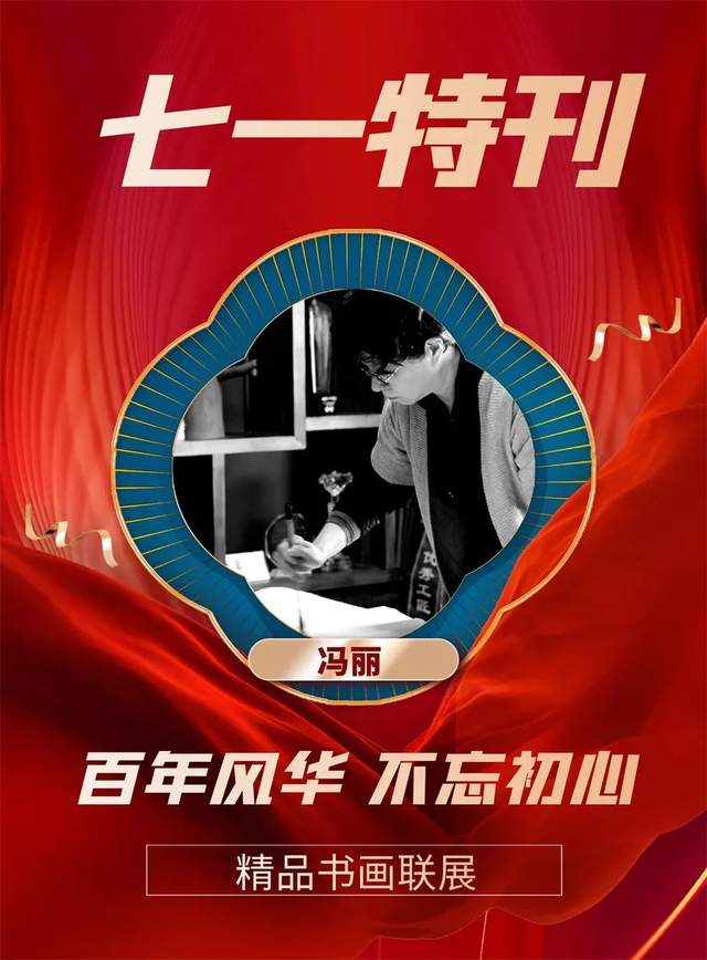 2021年6月为中国共产党成立100周年,中国文化和旅游部转载《名家翰墨》《七一特刋》冯丽书法《庆百年风华,抒时代强音》精品书画联展;