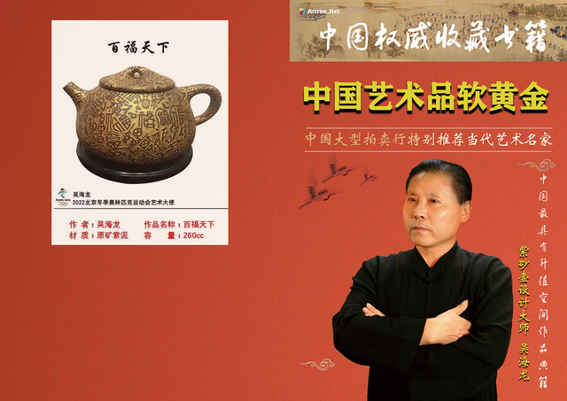 吴海龙,中国工艺美术大师,紫砂壶型设计大师、中国国礼特供艺术家、手工艺术专业委员会会员。中国文化遗产保护传承人物、中阿经贸合作论坛艺术宣传大使、中国书法文化研究所创作中心客座教授、中华民族伟大复兴杰出贡献人物。中华民族杰出艺术家,中国囯际现代艺术研究中心终身艺术顾问。中国领导干部龙文化书画院紫砂艺术馆馆长、“吴氏金鼎” 品牌创始人,吴氏陶艺紫砂艺术馆馆长,诚信紫砂艺术家。宜兴吴门,百年传承。吴氏陶艺第五代传人吴海龙从小聪明智慧,幼随父习艺,薰艺家风,承前启后,把吴氏紫砂绝艺发扬光大。作品均以天然原材料为主,采用吴家传统工艺和创新技法,突出其精湛的技艺,自成一体,独创吴氏重传统更重创新的风格。吴海龙自幼乐于收藏,从家藏老壶中传承并创新,他设计的紫砂壶外形既尊重传统,又“方非一式,圆不一相,” 突出变化,外形既古雅时尚、又朴实自然。其作品寓意于壶, 还魂于砂,严谨而不泥古,典雅也趣于天然。他的紫砂作品 多次荣获海内外国际性及国家级金奖,被人民大会堂、中南海艺术馆、国家博物馆、中国农业博物馆等纷纷收藏。