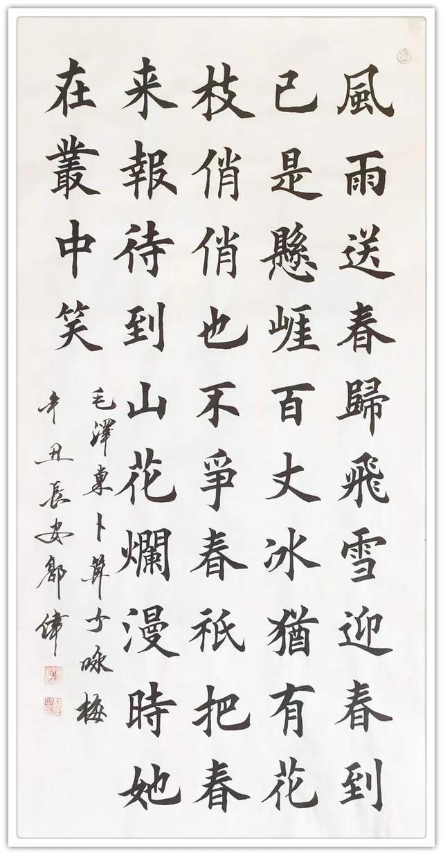 处师造化,师法自然是他不二的信念。叩问:用心灵去参悟,用墨笔行笔,且惜墨如金。复心有得意的作品跃然纸上,有几分飘逸,有几分得意,心头为之怦然。作家是用作品说话的,书法家是用笔墨示人的。郭伟高挑明灯,苦心研习,寒香便是他的心音。挥笔写心意,昂首领奖台,也应当祝福他诗意的生活。从黄土高坡到古都怀抱,一路走来,走进他摆着端砚、青瓷的“照剑斋”在满架书贴图书,在平展的宣纸间神定气闲,照剑斋主依然在水墨之路上耕耘。
