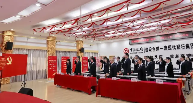 ▲ 由市分行纪委书记李轶同志领誓,重温入党誓词