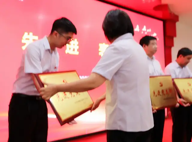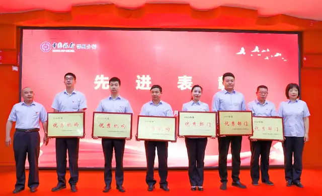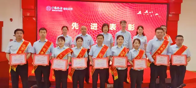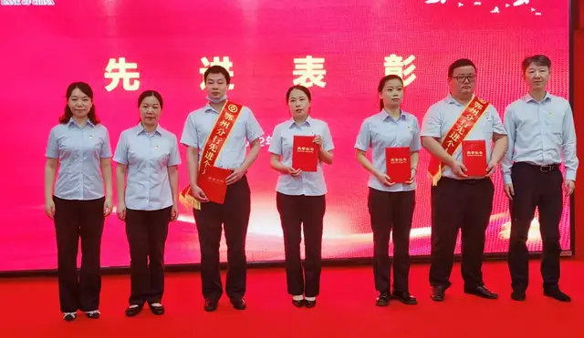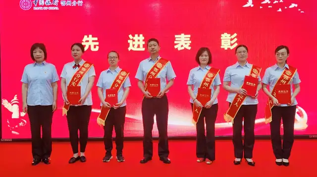 由纪委书记李轶同志宣读表彰文件,对综合管理部党支部等3个先进党支部,楚磊等10名优秀党员,1名党务工作者进行了通报表彰,还对鄂州分行2021年度优秀集体及个人进行了通报表彰,并颁发了奖牌和证书。