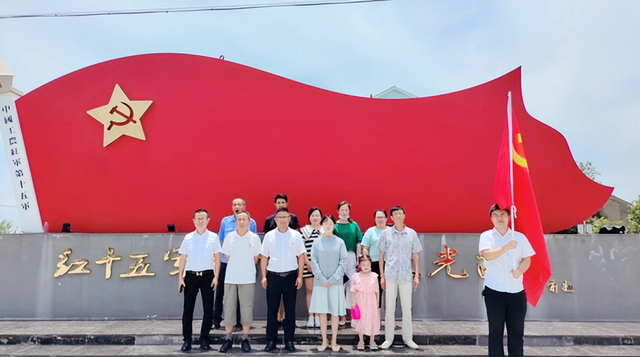 老师像蜡烛,无私奉献,燃烧自己,点亮未来。老师像园丁,辛勤栽培祖国花朵。活动在党旗引领下拉开序幕。上午十点,大家兴致勃勃,冒着酷暑,来到原红十五军策源地-----花桥镇兰杰村红十五军纪念广场,寻访红色遗迹,感受红十五军当年的艰苦历程。