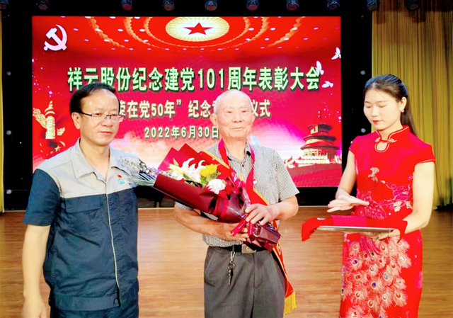 贯彻落实湖北省第十二次党代会精神,以优异业绩迎接党的二十大隆重召开。6月30日,祥云股份建党101周年表彰大会暨演讲比赛在会议中心召开。大会为五名老党员颁发了“光荣在党50年”纪念章,表彰了一批红旗党支部、党员示范岗、优秀党员。