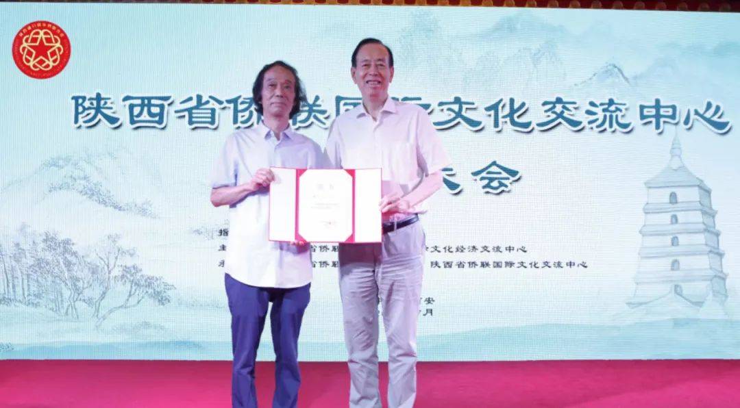 陕西省侨联主席郝跃为陕西省侨联国际文化交流中心理事长魏良颁发聘书