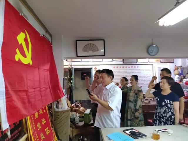 至此恰逢是中国共产党建党101周年纪念日,与会党员开展重温入党仪式,向党旗宣誓,不忘初心牢记使命永远跟党走永不叛党时刻准备着为党为人民奉献自我精神。宣誓结束后老党员开展了和入党积极分子预备党员谈话工作并详细记录。