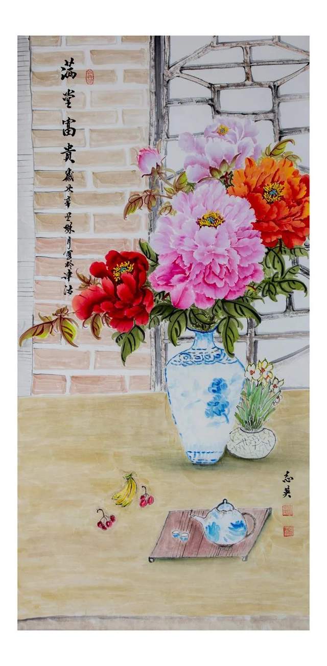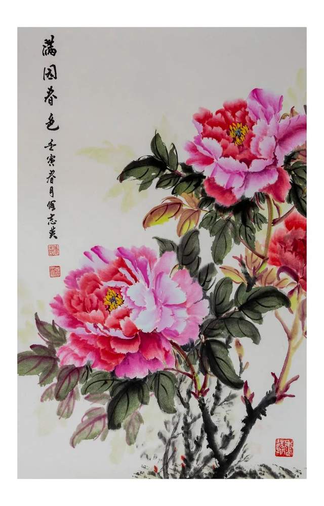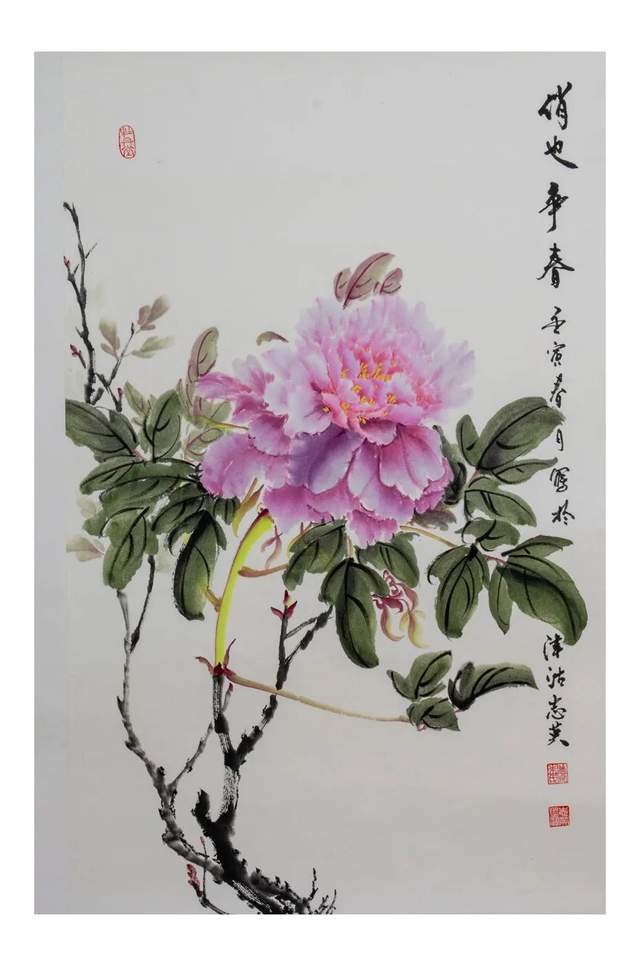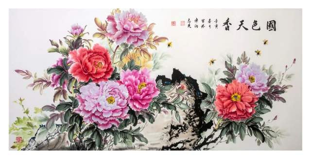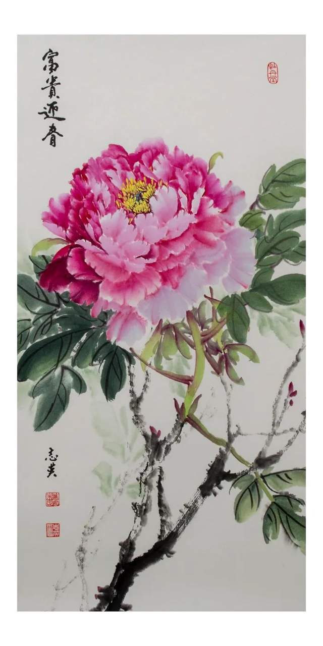 朱志英国画牡丹赏析