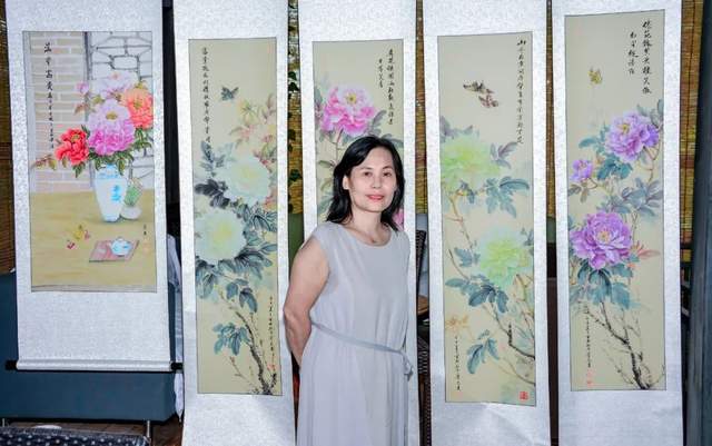 10年前一次偶然的机会,我参观了中国牡丹白洋淀产业园。我被牡丹它那华贵圆满、雍容富贵的国色天香所吸引。国画里经常使用的一个素材就是牡丹了,它的姿色让人倾倒,而且雍容华贵,含有美的意味,代表着爱的纯洁。从那时候起,我爱上了国画牡丹。