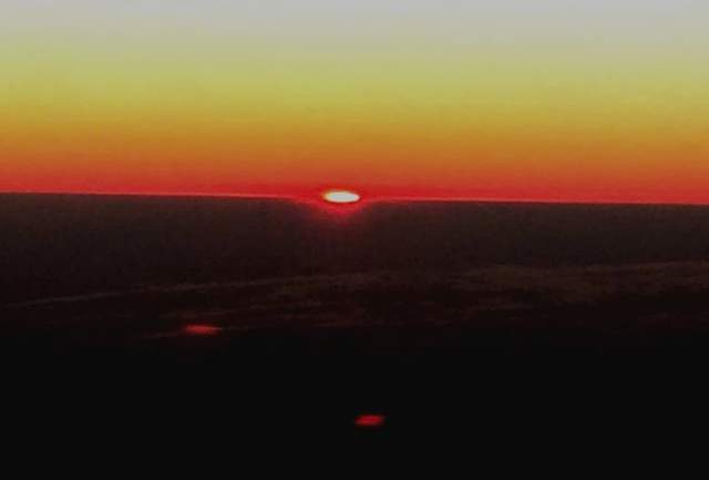 我乘坐飞机遨游蓝天已经是四十多岁以后了。那是飞行了十多个小时的欧洲之旅。从飞机上俯瞰河流在阳光的照耀下闪着银光,像一条银色的链子镶嵌在大地上。从飞机上看日出那种由暗变亮的过程让我感受到了生命诞生勃发的兴奋和期待。从飞机上观日落也有别样的辉煌,黄昏被飞机奋力拉长,载着我们追逐美好的夕阳和梦想。