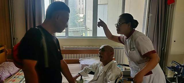 在张霞引导下,与清风兄来到老父亲房间。这屋里干干净净,窗明几净,地板亮堂堂且防滑。空调26度温度宜人,电视机、遥感器等设备一应俱全。老爷子正睡着,梦里说着“普亲”二字,脸上洋溢着甜蜜的笑。几分钟后醒来,仔细询问了笔者身份后,亲切交谈起来。
