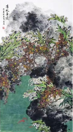 作品讲述:在一汪碧潭周围,以圆润的太湖石、洁白的水仙花和攀石而行的紫褐色爬山虎巧妙组合,绘就出一幅幽静的初春景色。几尾红色的小鱼在潭水中嬉戏,给沉寂的潭水增添了几分活力,告诉人们:春天来了。