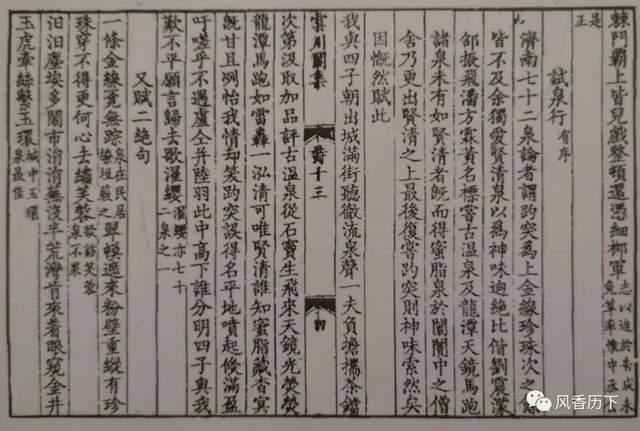 《山东通志》垂竣,杜半楼再也按捺不住激动的心情,这天一大早,他约上四位与他一道修志的同人,特意雇了一位强壮挑夫,挑上专门用来煎茶的茶铛等品茶工具,在济南城内城外遍游群泉以品评水味(“我与四子朝出城,滿街聽彻流泉聲。一夫负担携茶铛,次第汲取加品评。”),写下独具慧眼、脍炙人口的《试泉行》《又赋二绝句》诗。