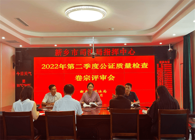 期间,新乡市司法局召开卷宗评审会,通过集中人员、交叉评审的方式,从市属豫新、红旗公证处随机抽取的2022年第二季度以来办结的证据保全、赋予强制执行、继承、委托、房屋买卖等公证卷宗,严格按照《新乡市公证质量评查扣分表》进行检查评分。