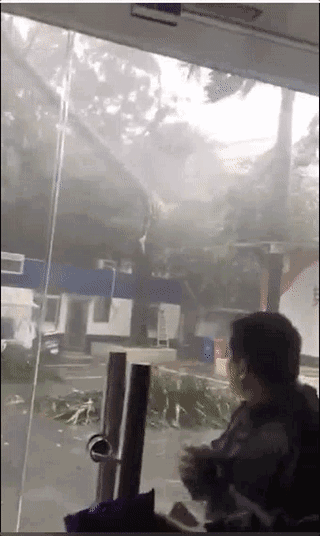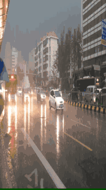 暴雨啪啪来我城,瞬间公路浪涛声。