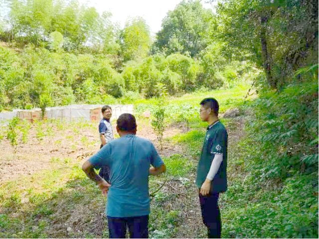 实践团成员跟随吴德才依次前往绿荷塘村、小刺源村、泥潭底村三块图斑所在地,并协助开展卫片图斑核查工作。吴德才带领成员们对下发卫片图斑逐一进行现
