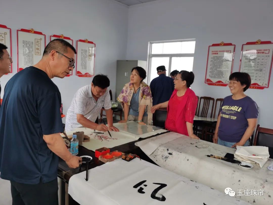 今天,来自区镇的书画家们饱含激情,挥毫泼墨,用手中的画笔抒发对美丽村庄的赞扬和对党的感恩。一幅幅作品大气磅礴,栩栩如生。文化下乡文化自信,更是送来精神食粮。而此时的我没有写画,我只想着用镜头留住这感人的场面,记下这美好的时刻。我的根在这里,虽然几十年工作在外,但这些年来总是喜欢回来跟娘上坡,听婶子大娘拉呱,吃弟妹们从自己地里现采摘的果菜,喜欢烟火人家。