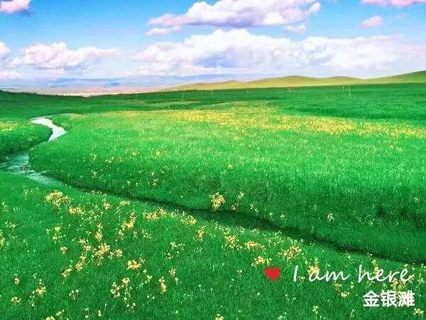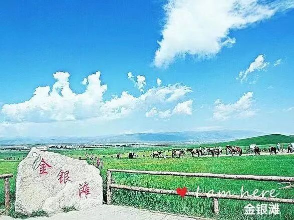 从青海省会西宁向西90公里,在青海湖的北岸,有一块平均海拔3210米、方圆1170平方公里的美丽草场,麻皮河、哈利津河横贯东西。每年夏季,北面草滩上盛开着名叫金露梅的金色小花,故名金滩;南面草滩上则是洁白如银的银露梅的天下,所以叫银滩。金银两种颜色交相辉映,为草原平添了秀丽,这里也就有了一个动听的名字——金银滩草原!