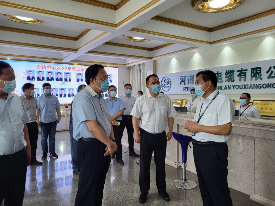 2022年7月22日,驻马店市人民政府副市长孙继伟一行来到河南乐山电缆有限公司,调研企业运行和发展经营情况。经济开发区党工委书记史爱民、经济开发区党工委副书记、管委会主任闫峰、河南乐山电缆有限公司董事长李全岭陪同调研。